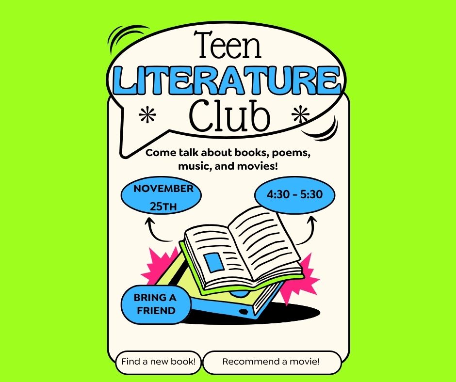 Swing by the Library every Thursday from 3:30–5:00 p.m. for an afternoon of fun! Hang out with friends, chill with snacks, and choose your vibe—study, get crafty, play board games, or just relax and color. Open to grades 6–12.