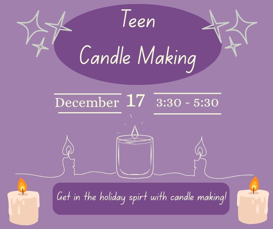 Light up your creativity! Teens are invited to design and pour their very own candles to take home. Choose colors, scents, and styles to make something totally unique. (Fair warning: things might get a little smelly—in the best way!) Come for the craft, stay for the fun, and leave with a candle that’s all yours.